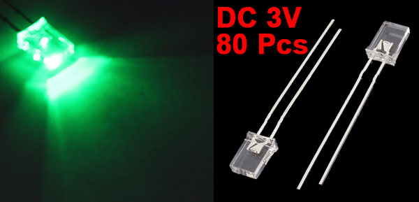 80 Pcs 3mm x 5mm x 7mm Head 2Pin DIP LED Green Light Emitting Diode Bulb