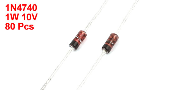 Product Name Zener Diodes Model 1N4740 Type Axial Lead Rating Voltage 10V Power 1W Overall Size 65 x 2mm/2.6" x 0.08"(L*D) Weight 11g Package Content 80(±2%) x Zener Diodes - Reviews
