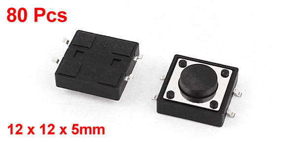 80 Pcs SMD 4pin Momentary Push Button Tactile Tact Switches 12x12x5mm