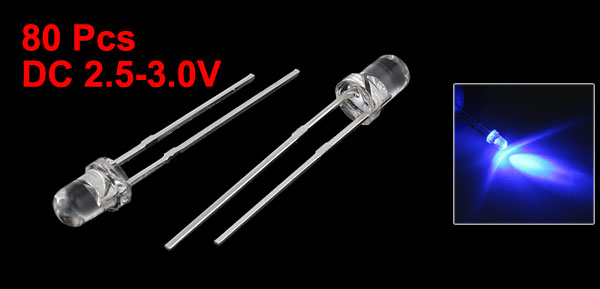 Details80 Pcs Super Bright 3mm Straw Hat Blue LED Lamp Light Emitting Diode DC 2.5-3.0V  Product Name Light Emitting Diode Material Metal, Plastic Emitting Light Color Blue Voltage DC 2.5-3.0V Head Size(Approx) 5 x 3mm/ 0.2" x 0.12"(L*D) Pin Size (Approx.) 0.5 x 18mm / 0.02" x 07" (D * Max.L)
