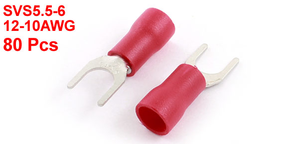 80 Pcs SVS5.5-6 48A 12-10AWG Red Insulated Fork Terminal Connector 6.4mm
