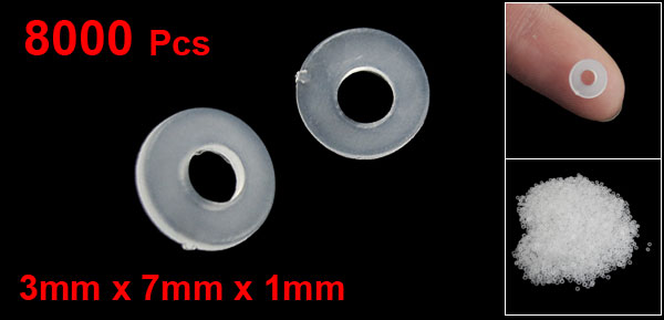 Product Name Insulator Nylon Washers Material Nylon Inner Diameter (Approx.) 3mm / 3/25" Outside Diameter (Approx.) 7mm / 7/25" Thickness (Approx.) 1mm / 5/128" Color White Weight 219g Package Content 8000 Pcs(+/-2%) xInsulator Nylon Washers - Reviews