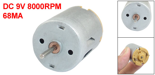 Product Name DC Motor Rated Voltage DC 9V Speed 8000RPM Current 68mA Shaft Size 2 x 13mm/ 0.08" x 0.51"(D*L) Body Size 24 x 31mm/ 0.9" x 1.2" (D*H) Main Color Silver Tone Material Metal Net Weight 43g Package 1 x DC Motor - Reviews