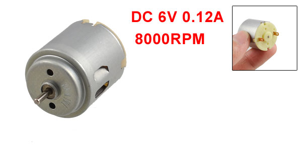 Product Name DC Motor Rated Voltage DC 6V Current 0.12A Speed 8000RPM Shaft Size 2 x 10mm/ 0.08" x 0.4"(D*H) Body Size 24 x 31mm / 0.93"x 1.2"(Max.D*H) Total Length 40mm / 1.6" Main Color Silver Tone Main Material Metal Weight 28g Package 1 x DC Motor - Reviews