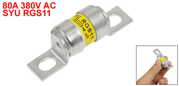Product Name Bolt Connected Fuse Model SYU RGS11 Type Fast Blow Material Metal Rated Voltage 380V Rated Current 80A Main Color Silver Tone Total Size 56 x 17mm / 2.2" x 0.67" (L*D) Hole Size 8.2 x5.8mm / 0.3"x 0.2" (L*W) Weight 24g Package Content 1 x Bolt Connected Fuse - Reviews
