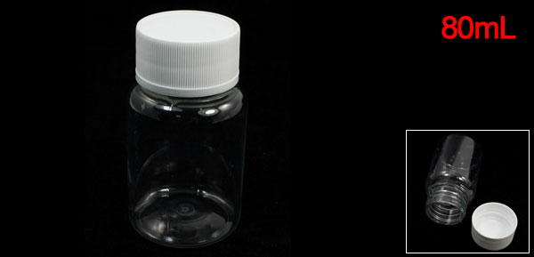 Details80mL 8.5cm x 4.5cm White Clear Plastic Skidproof Cap Liquid Container Bottle  Product Name Lab Plastic Bottle Material Plastic Capacity 80mL Mouth Dia 30mm / 1.2" Overall Size (Approx.) 8.5 x 4.5 cm / 3.3" x 1.7" (L*Max.D) Color White, Clear Net Weight 19g Package Content 1 x Lab Plastic Bottle