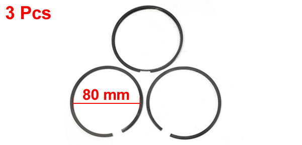 Details80mm Diameter Piston Rings Set for Air Compressor 3 Pcs  Product Name Piston Ring Compatible for Air Compressor Including Balance Ring (2 Pcs) Seal Ring (1 Pcs) Diameter 80mm / 3.15" Thickness 3mm / 0.118" Material Metal Color Black Weight 45g Package Content Piston Ring Set(3 Pcs)