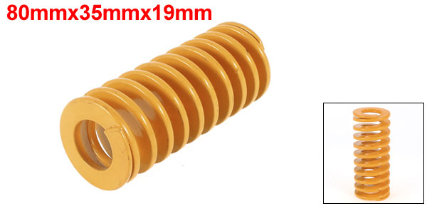 Product Name Compression Spring Material Metal Outside Diameter 35mm / 1.4" Inner Diameter 19mm / 0.8" Total Length 80mm /3.1" Color Yellow Weight 165g Package Content 1 x Compression Spring - Reviews