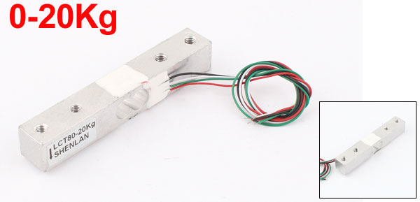 Product Name Weighing Load Cell Rated Load 0-20Kg Ranted Output 1.0 +/-10 %mV/V Non-Linearity 0.02%F.S. Hysteresis 0.02%F.S. Repeatability 0.02%F.S. Zero Balance +/-2%F.S. Temp Effect on Zero 0.025%F.S./10C Temp Effect on Zero Output 0.025%F.S./10C Creep (30min) 0.03%F.S. Input Impedance 410+/-30 Ohm Output Impedance 350+/-3 Ohm Insulation > 2000 Megohm / 50V DC Compensated Temperature Range -10C~40C Operating Temperature Range -20C~60C Safe Overload 150%F.S. Ultimate Overload 300%F.S. Input End Red+, Black- Output End Blue+, White- Recommended Excitation 10V Maximum Excitation 15V Load Cell Size 80 x 12.7 x 12.7mm / 3.1" x 0.5" x 0.3" (L*W*T) Thead Hole Diameter 4mm Center Hole Size 15 x 8mm (L*Max.W) Cable Length 20cm / 7.9" Main Color Silver Tone Material Aluminum Weight 33g Package Content 1 x Weighing Load Cell - Reviews