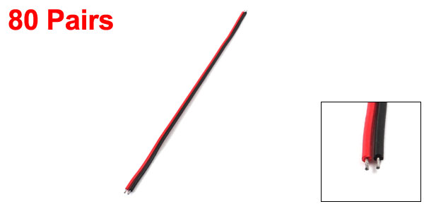Details80Pair Red Black Flexible Tin Plated Breadboard Jumper Wires 15cm 6"  Main Color Red, Black Net Weight 101g Country of Manufacture CHINA Package Content 80 Pairs(+/-2%) x Jumper Wire Wire Dia 1.5mm/0.06" Material Plastic, Metal Wire Length 15cm/6"