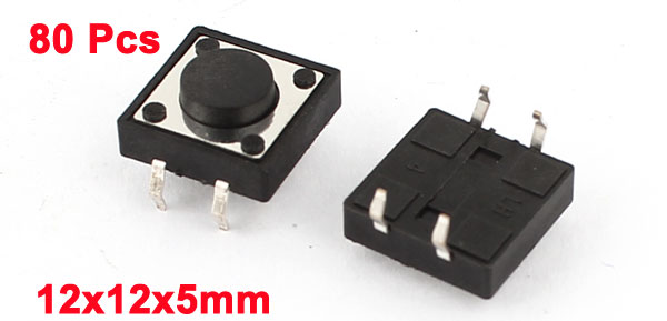 80Pcs 12x12x5mm Momentary 4 Pin DIP Pushbutton Tactile Tact Switches