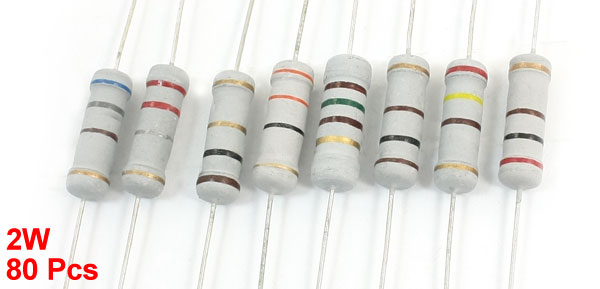 (8 Value, each is 10 pcs)Tolerance ±5% Band Number 4 Body Size 15 x 4mm/0.6" x 0.16"(L*D) Total Length 6.3cm / 2.5" Lead Diameter 4mm/ 0.16" Weight 70g Package Content 80Pcs (±2%) x Carbon Film Resistors - Reviews