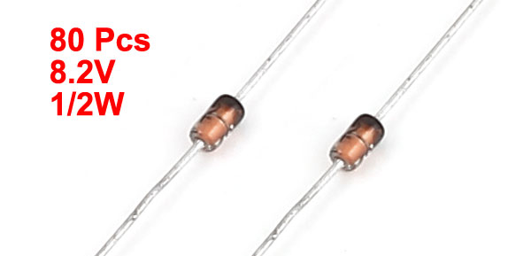 Product Name Zener Diodes Type Axial Lead Rating Voltage 8.2V Power 1/2W Overall Size 65 x 2mm/2.6" x 0.08"(L*D) Weight 13g Package Content 80(±2%) x Zener Diodes - Reviews