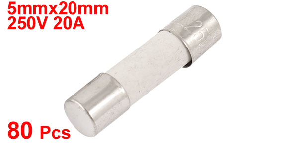80pcs Fast-blow Acting Ceramic Fuses Link 5mmx20mm 250V 20A
