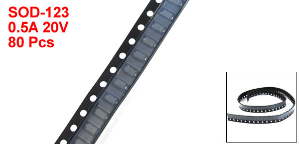 Product Name Schottky Diode Model MBR0520 Diode Case/Package SOD-123 Pin Count 2 Current 0.5A Reverse Voltage 20V Peak Non-Repetitive Surge Current 5.5A Maximum Forward Voltage @0.5A 0.385V Operation Junction Temperature -65C to +125C Body Dimension 4 x 1.5mm(L*W) Total Length 70cm / 27.6" Color Black Weight 3g Package Content 80 in 1 (±2%)x Schottky Diodes - Reviews