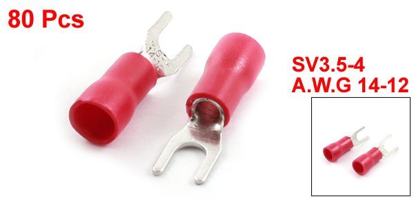 80PCS Red Insulated Furcate Fork Terminals Cable Lug AWG14-12 SV3.5-4