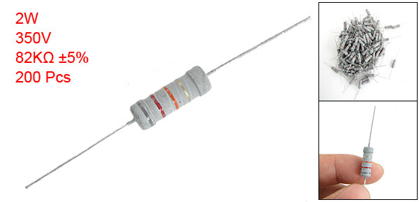 Product Name Carbon Film Resistors Material Type Carbon Film Rated Power 2W Resistance Value 82K ohm Tolerance ±5% Withstand Voltage 350V Total Size 59 x 5mm / 2.322" x 0.196" (L * D) Lead Diameter 0.4mm / 0.0157" Color As Picture Shown Weight 170g Package Content 200 Pcs (± 2%) x Carbon Film Resistors - Reviews