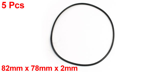 82mm Outside Dia 2mm Thickness Rubber Oil Seal Rings Washers Black 5Pcs