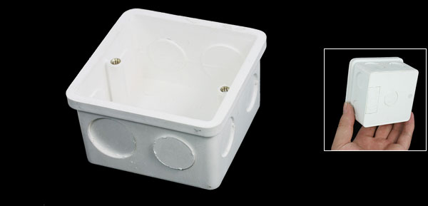 Product Name Junction Box Mounted Type Flush Type Installing Thread Hole Diameter 3.5mm/ 0.1" Installing Thread Hole Center Distance 59mm/ 2.3" Panel Size 82 x 82mm/3.2" x 3.2"(L*W) Mounted Size 72 x 72 x 39mm/ 2.8" x 2.8" x 1.5"(L*W*H) Total Height 45mm/1.8" Material PVC Color White Net Weight 60g Package 1 x Junction Box - Reviews