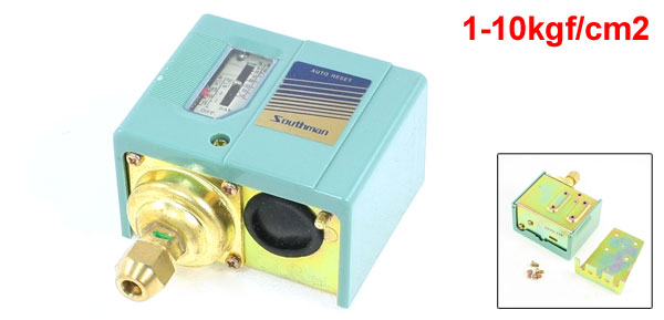 Differential 1-3kgf/cm2, 15-45Lb/in2, 15-45PSI Thread Diameter 11mm Overall Size 8 x 4.6 x 10cm/ 3.1" x 1.8" x 3.9" (L*W*H) Color Light Forest Green, Gold Tone Material Metal Net Weight 417g Package 1 x Pressure Switch