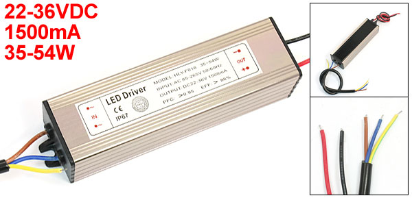 Product Name LED Drive Power Supply Model HL-F016 35-54W Input AC 85-265V 50/60Hz Output 22-36VDC 1500mA 35-54W Size 15 x 3.8 x 3cm/5.9" x 1.5" x 1.2"(L*W*T) Material Aluminum, Electronic Parts Main Color Gray, Silver Tone Weight 274g Package Content 1 x LED Drive Power Supply - Reviews