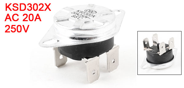 Product Name Thermostat Model.No KSD302X Action Type (NO)Normal Open Action Temperature 85C Pin Hole Diameter 1.86mm / 0.073" Pin Distance 15mm / 0.59" Voltage AC 20A 250V Size(Each) 3.2 x 1.9 x 2.1cm/1.26" x 0.75" x 0.83" (L*W* H) Material Metal, Plastic Color Black, Silver Tone Net Weight 12g Package Content 1 x Thermostat - Reviews