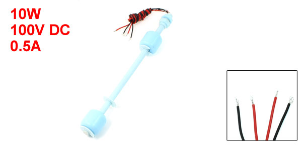 Product Name Float Switch Contacts NO+NC Max Contact Rating 10W Max Switching Voltage 100V DC Max Switching Current 0.5A Max Breakdown Voltage 220V DC Max Carry Current 1.0A Max Contact Resistance 100mΩ Temperature Rating -10 ~ +60 °C / 85 °C Float Ball Material PP Float Body Material PP Float Ball Size(Approx) 25 x 26mm / 1" x 1.1"(L*D) Thread Dia(Approx) 9.3mm / 0.37" Nut Dia(Approx) 14mm / 0.55" Bottom Clip Dia(Approx) 21mm / 0.85" Body Total Length 21.5cm / 8.5" Cable Length 41cm / 10.4" Color Blue Net Weight 35g Package Content 1 x Float Switch - Reviews