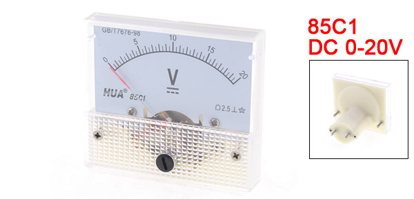 Product Name Analog Voltmeter Model No. 85C1 Measuring Voltage Range DC 0-20V Accuracy Class 0.5 Meter Face Size(Approx) 6.3 x 5.5 x 1.2cm / 2.5" x 2.2" x 0.5"(L*W*T) Thread Dia(Approx) 3mm Overall Depth 5.5cm / 2.2" Color White, Clear Material Metal, Plastic Net Weight 60g Package Content 1 x Analog Voltmeter