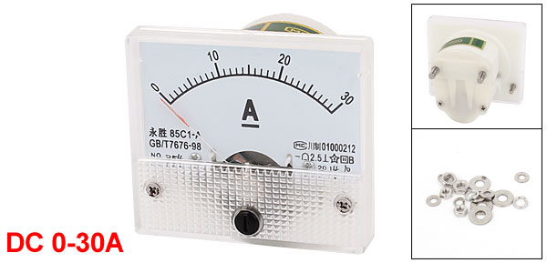 Panel Size 65 x 55 x 10mm/2.5" x 2.2" x 0.4"(L*W*T) Main Color Clear Brand DMiotech Net Weight 83g Total Length 60mm/2.4" Country of Manufacture CHINA Model 85C1-A Package Content 1 x Analog Ammeter Screw Diameter 4mm/0.16" Material Plastic, Metal Accuracy 2.5 Class Measuring Current Range DC 0-30A - Reviews