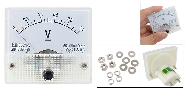 Product Name Analog Voltmeter Model 85C1 Measuring Voltage Range DC 0 - 1.0V Accuracy Class 2.5 Meter Face Size(Approx) 6.3 x 5.5 x 1cm / 2.5" x 2.2" x 0.39"(L*W*T) Thread Size 0.37 x 0.83cm / 0.15" x 0.33"(D*L) Overall Depth 5.77cm / 2.27" Color White Net Weight 53g Package Content 1 x Analog Voltmeter Several Installing Parts - Reviews