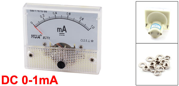 Total Height(Not Included Screw) 48mm/1.9" Panel Size 64 x 56 x 11mm/2.5" x 2.2" x 0.43"(L*W*T) Main Color Clear, Black Brand DMiotech Net Weight 56g Country of Manufacture CHINA Model 85C1 Package Content 1 x Analog Ammeter ( Several Installing Parts) Material Plastic, Metal Accuracy Class 2.5 Mounting Thread Dia 3mm/0.12" Measuring Current Range DC 0-1mA - Reviews