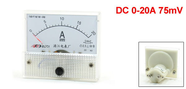 Product Name Analog Ammeter Model 85C1 Measuring Current Range DC 0-20A Accuracy Class 2.5 Total Size 64 x 56 x 60mm / 2.5" x 2.2" x 2.4"(L*W*T) Thread Dia. 3mm/ 0.12"