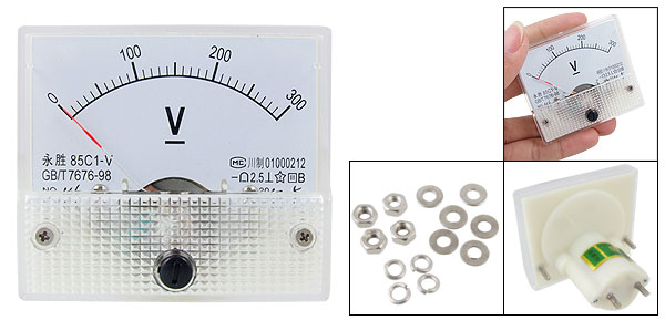 Product Name Analog Voltmeter Model 85C1 Measuring Voltage Range DC 0 - 300V Accuracy Class 2.5 Meter Face Size(Approx) 6.3 x 5.5 x 1cm / 2.5" x 2.2" x 0.39"(L*W*T) Thread Size 0.37 x 0.83cm / 0.15" x 0.33"(D*L) Overall Depth 5.77cm / 2.27" Color White Net Weight 53g Package Content 1 x Analog Voltmeter Several Installing Parts - Reviews