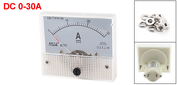 Panel Size 64 x 56 x 10mm/2.5" x 2.2" x 0.4"(L*W*T) Main Color Clear for Current Shunt Type 75mV Current Shunt Net Weight 56g Total Length 48mm/1.9" Country of Manufacture CHINA Model 85C1 Package Content 1 x Analog Ammeter Screw Diameter 3mm Material Plastic, Metal Accuracy 2.5 Class Measuring Current Range DC 0-30A - Reviews