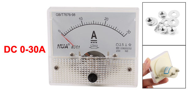 Product Name Analog Ammeter Model 85C1 Measuring Current Range DC 0-30A Accuracy Class 2.5 Meter Face Size(Approx.) 6.2 x 5.5 x 1cm / 2.5" x 2.2" x 0.39"(L*W*T) Thread Size 0.28 x 0.7cm / 0.11" x 0.28"(Dia.*L)
