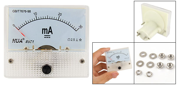 Product Name Analog Ammeter Model No. 85C1 Measuring Current Range DC 0-30mA Accuracy Class 2.5 Meter Face Size(Approx.) 6.3 x 5.5 x 1cm / 2.5" x 2.2" x 0.39"(L*W*T) Thread Size 2.9 x 6mm/0.1" x 0.2"(D*L) 2.8 x 10mm/0.11" x 0.4"(Dia.*L) Overall Depth 4.6cm/1.8" Material Plastic, Electronic Components Color As Picture Show Net Weight 56g Package Content 1 x Analog Ammeter Several Installing Parts - Reviews