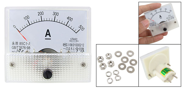 Product Name Analog Ammeter Model 85C1 Measuring Current Range DC 0-500A Accuracy Class 2.5 Meter Face Size(Approx) 6.3 x 5.5 x 1cm / 2.5" x 2.2" x 0.39"(L*W*T) Thread Size 0.37 x 0.83cm / 0.15" x 0.33"(D*L) Overall Depth 5.77cm / 2.27" Color White Net Weight 62g Package Content 1 x Analog Ammeter Several Installing Parts - Reviews