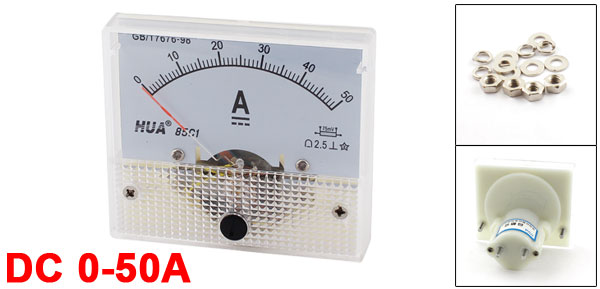 Total Height(Not Included Screw) 49mm/1.95" Panel Size 64 x 56 x 12mm/2.5" x 2.2" x 0.47"(L*W*T) Main Color Clear, Black Brand DMiotech Net Weight 60g Country of Manufacture CHINA Model 85C1 Package Content 1 x Analog Ammeter ( Several Installing Parts) Material Plastic, Metal Accuracy Class 2.5 Mounting Thread Dia 3mm/0.12" Measuring Current Range DC 0-50A - Reviews