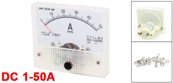 Main Color White, Clear Thread Dia 3mm/0.12" Brand DMiotech Country of Manufacture CHINA Model 85C1 Material Plastic, Electronic Components Accuracy Class 2.5 Panel Size 64 x 56mm / 2.5" x 2.2" (L*W) Net Weight 72g Package Content 1 x Analog Ammeter Several Installation Accessory Overall Depth 5.7cm / 2.24" Mount Panel Measuring Current Range 1-50A - Reviews
