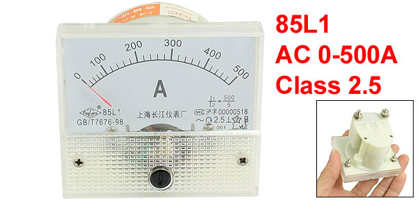 Product Name Analog Ammeter Model 85L1 Measuring Range AC 0-500A Accuracy Class 2.5 Meter Face Size(Approx) 6.3 x 5.5 x 1cm / 2.5" x 2.2" x 0.39"(L*W*T) Thread Size 0.28 x 0.75cm / 0.11" x 0.30"(D*L)
