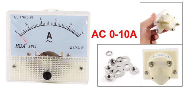 Product Name Analog Ammeter Model 85L1 Measuring Current Range AC 0-10A Accuracy Class 2.5 Meter Face Size(Approx.) 6.2 x 5.5 x 1cm / 2.5" x 2.2" x 0.39"(L*W*T) Thread Size 0.28 x 0.7cm / 0.11" x 0.28"(Dia.*L)