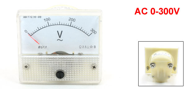 Product Name Analog Voltmeter Model 85L1 Measuring Voltage Range AC 0-300V Accuracy Class 2.5 Total Size 6.5 x 5.7 x 6cm/2.6" x 2.2" x 2.4"(L*W*T) Color White, Beige Net Weight 90g Package Content 1 x Analog Voltmeter