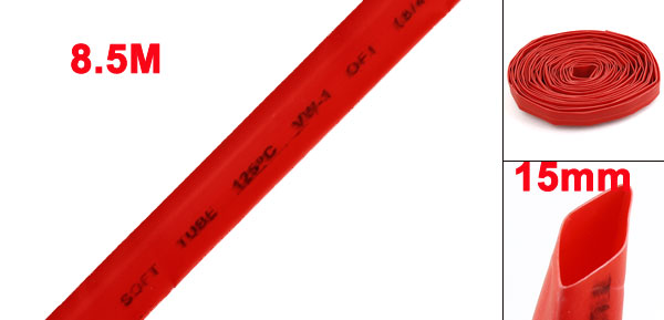 8.5M 28Ft Long 15mm Dia. Red Polyolefin Heat Shrinkable Tube