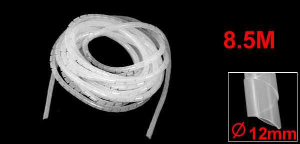 Product Name Spiral Wrap Material Polyethylene Color White Total Length(Approx.) 8.5M / 27.9Ft Outside Diameter 12mm / 0.5'' Thickness 1mm / 0.04'' Weight 158g Package Content 1 x Spiral Wrap - Reviews