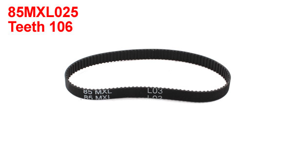 Product Name Timing Belt Model 85MXL025 Code Number 025 Number of Teeth 106 Teeth Pitch 2.032mm / 0.08" Belt Width 6.4mm / 0.25" Pitch Length 215.39mm/ 8.5" Material Rubber Color Black Weight 4g Package Content 1 x Timing Belt - Reviews