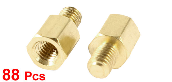 Product Name Standoff Hexagonal Spacer Thread Size M3 Male to Female 4mm+5mm Overall Size(Approx) 10 x 5mm / 0.4" x 0.2" (L*Max.D) Material Brass Color Gold Tone Net Weight 63g Package Content 88±2% x Standoff Hexagonal Spacer - Reviews