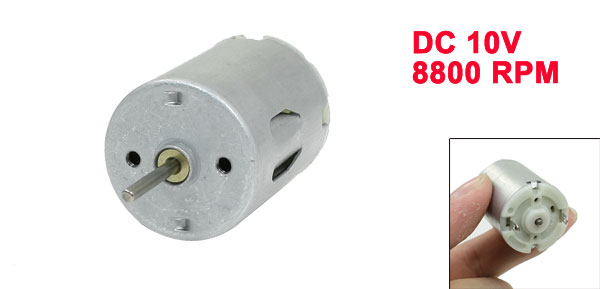 Product Name DC Motor Rated Voltage DC 10V Speed 8800 RPM Mounting Screw Hole Diameter 2mm/0.08" Shaft Size 2 x 14mm/ 0.08" x 0.55"(D*L) Body Size 24 x 32mm/ 0.91" x 1.3" (D*H) Main Color Silver Tone Material Metal Net Weight 41g Package 1 x DC Motor - Reviews
