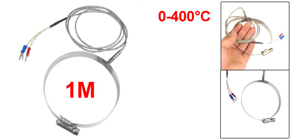 89mm Pipe Clamp Hoop 1 Meters Braided Wire 0-400C K Type Thermocouple Sensor