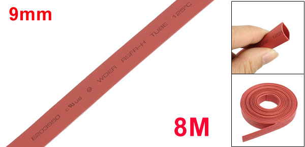 8M 26.2 ft 9mm Dia. Red Heat Shrink Tube Shrinkable Tubing