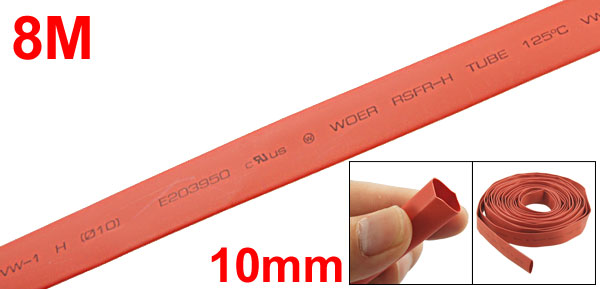 8M 26.2FT 10mm 3/8" Diameter Heat Shrink Tube Red